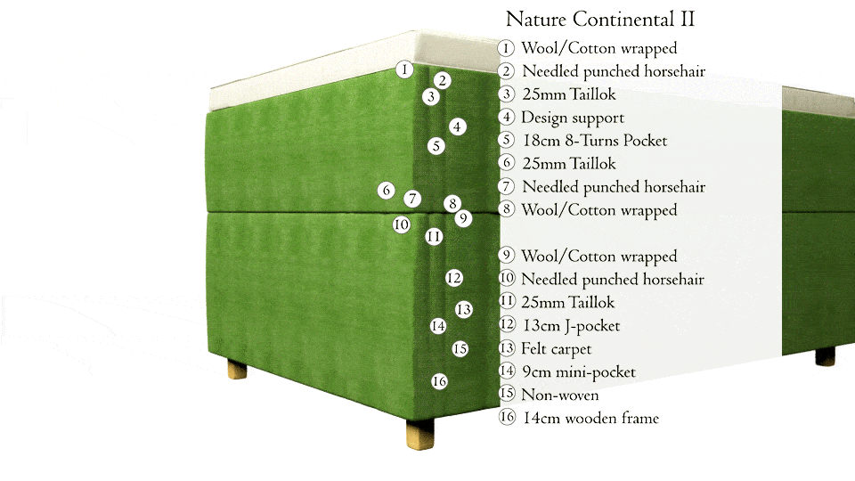 Våra sängar är byggda med omsorg och naturmaterial som ger både komfort och hållbarhet. Genom att kombinera traditionella material med modern design får du en säng som andas, håller länge och ger dig en naturligt skön sömn.